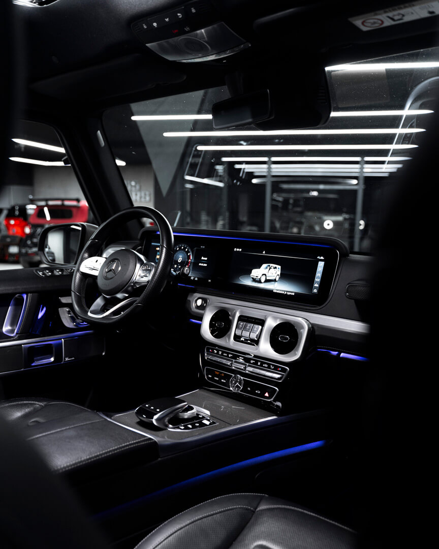 Bên trong, khoang cabin của G 500 là sự hòa trộn giữa phong cách địa hình và sự sang trọng của một chiếc sedan cao cấp: